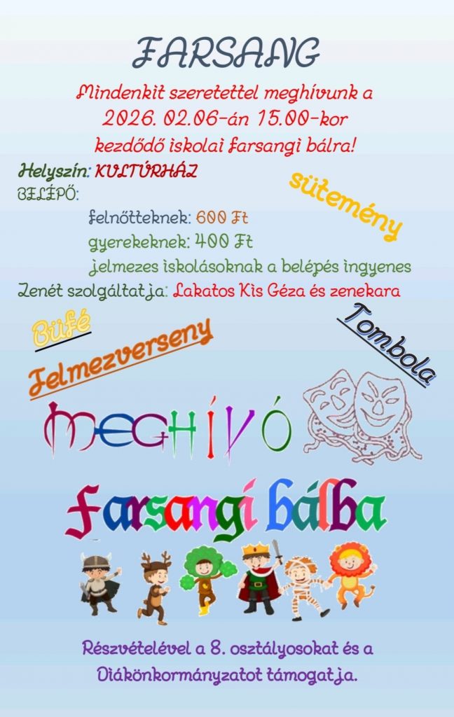 Nagy örömmel számolunk be róla, hogy tanítványaink is leadták alkotásaikat a máriakéméndi Farsangi Rajzpályázatra, ahol a „Busójárás” témáját kellett megeleveníteniük. A gyerekek remekül kapták el a népi hagyomány hangulatát, amit a zsűri is magas pontszámokkal jutalmazott.